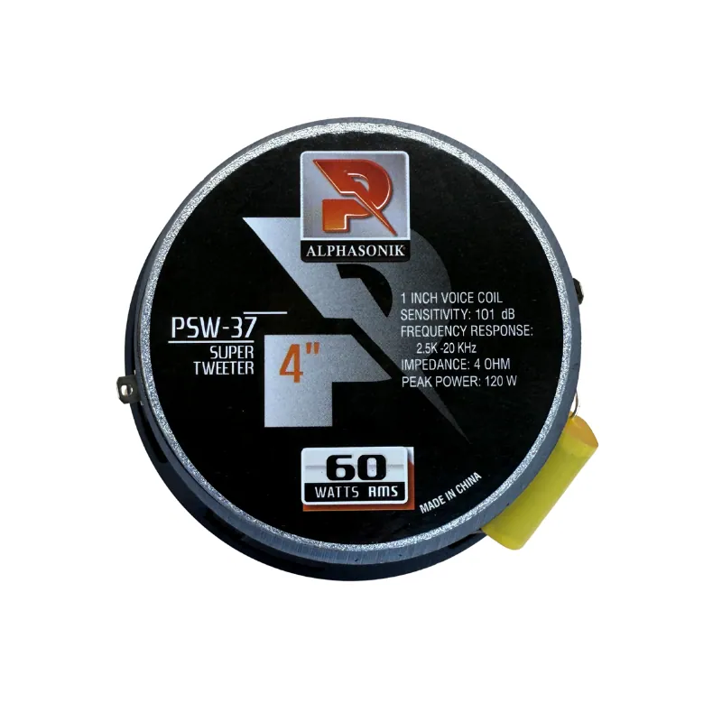 سوپر تیوتر آلفا سونیک مدل Alphasonik PSW-37 یکی از مدلهای کاربردی آلفاسونیک با سایز ۴ اینچ طراحی شده است. این سوپر تیوتر نسبت به تیوترهای رایج، سطح انتشار صدای بیشتری دارد در نتیجه پرتاب صدا و پوشش محیطی بهتری ایجاد میکند.