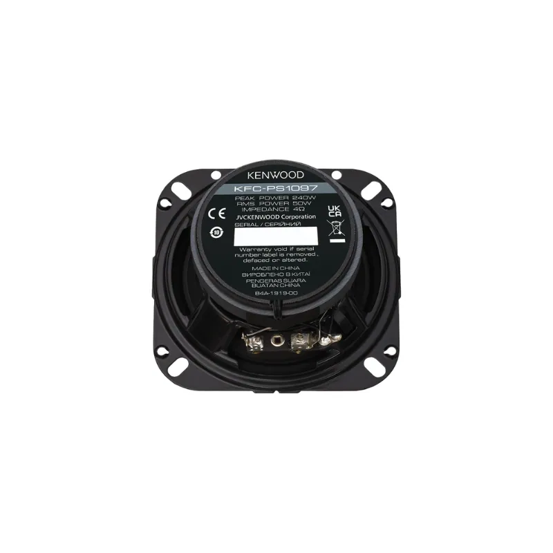 بلندگو گرد کنوود مدل Kenwood KFC-PS1097 یک باند گرد حرفه ای برند معتبر کنوود است این مدل باند ۳راهه (3-Way) کواکسیال 10 سانتی متر با کراساوور داخلی، انرژی صدا را میان سه درایور توزیع میکند تا هر بخش کار تخصصی خود را انجام دهد: ووفر برای بم و میدبیس، میدرنج/سوپر تیوتر برای جزئیات میانی و تیوتر برای فرکانسهای بالا؛ در نتیجه تداخل فرکانسی کاهش مییابد و خروجی نهایی شفاف و متعادل شنیده میشود.