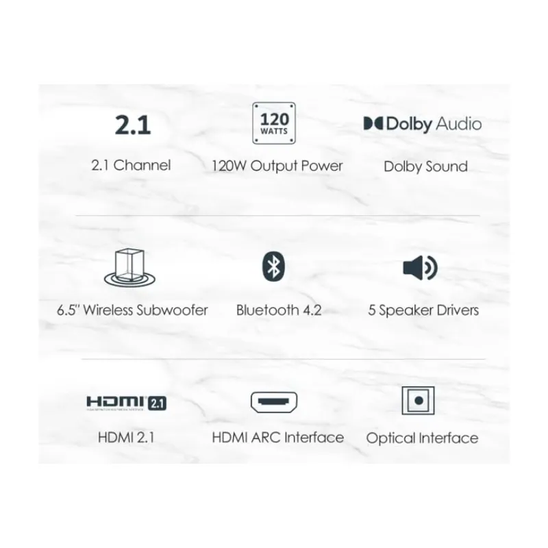 • ورودی‌های Optical، AUX، Bluetooth 4.2، HDMI ARC